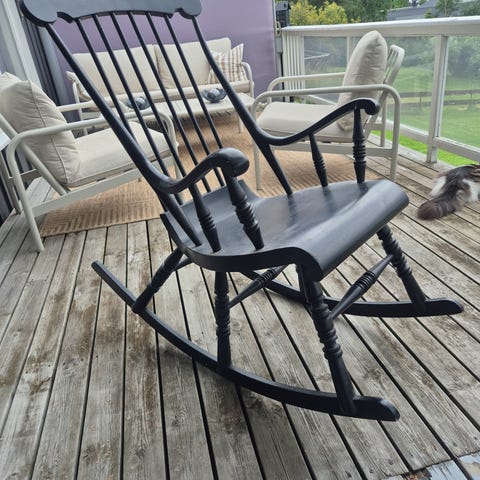 Koselig grønmalt gyngestol. Må hentes. Er reservert