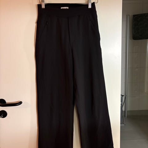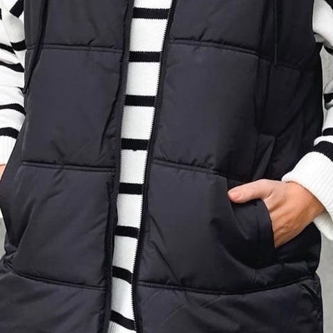 Selected Femme vest i ull for damer, størrelse S. Vesten er svart og laget av ullmateriale. Den har en løs passform med åpne sider som knytes, noe som gir mulighet for justering. Egnet for bruk som et lagplagg eller alene i ulike anledninger.