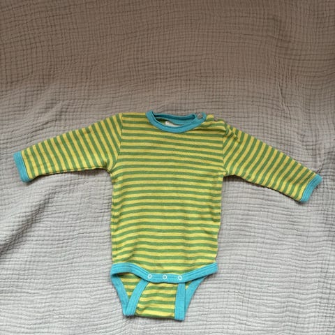 Stripene blå og grønn body fra Pippi, meget pent brukt