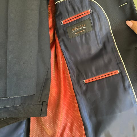 Oscar Jacobson dressjakke, dressbukse og skjorte tilhørende i størrelse 48, laget av ull. Skjorten er størrelse 39/15,5 slimfit. Pent brukt, ingen synlige bruksmerker. Kjøpt i tromsø for 2 år siden, selges da den er blitt for liten.