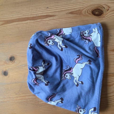Rosa mønstrete fleece pannebånd 54/56 selges kr 50,-