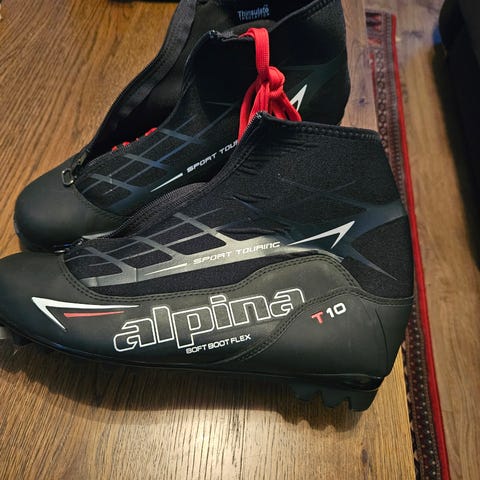 Alpina T10 langrennski støvler i svart med detaljer i grått. Støvlene har en robust såle med godt grep, egnet for langrenn. Materialet kombinerer tekstil og syntetiske komponenter for støtte og beskyttelse. Størelse 39