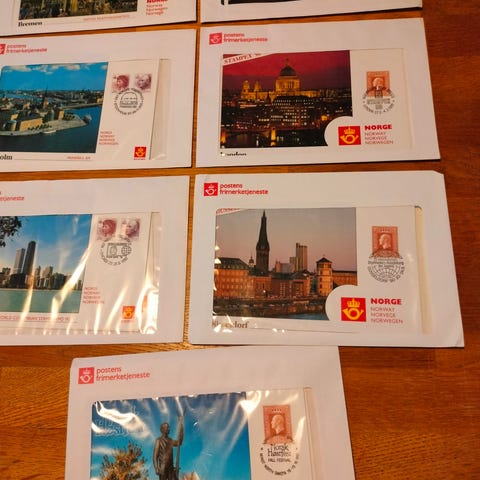 Posten Maksimumskort Nr 1-8 fra år 1996 og 1997. Settet inkluderer maksimumskort med forskjellige motiver og frimerker utgitt av Posten Norge.