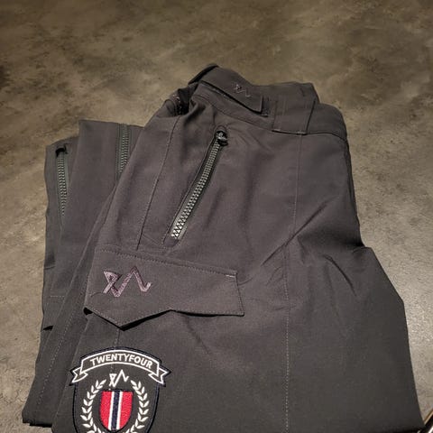 Nesten ubrukt skogstad turbukse, størrelse 34/XS. Borrelås og glidelås på beina og borrelås ved midjen