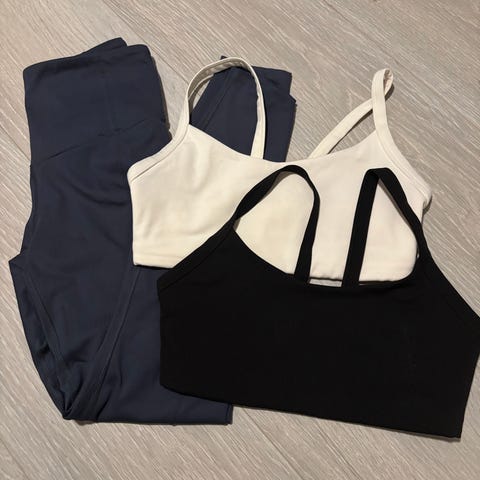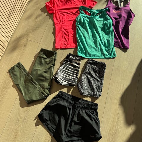 Selger en pakke med treningsklær til dame. Inneholder følgende: To stykk treningstights fra Johan. Str. XS, men passer fint str S. En treningsshorts fra Johaug i str. S, To treningstopper fra ICIW i str. M.