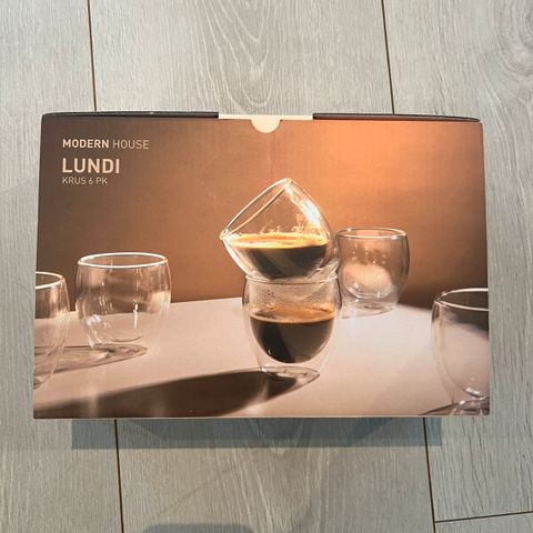 Selger to glass fra modern house da de ikke blir brukt. Helt nye og fortsatt i pakningen de kom i. Kom gjerne med bud:)