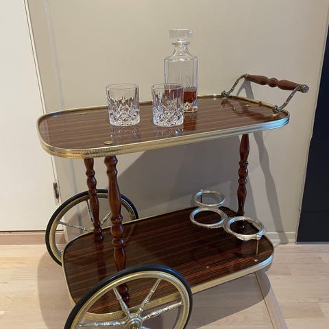 Antikk bar med krakk i mørkt tre