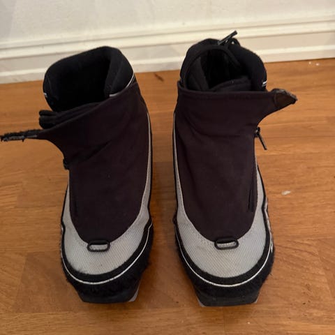 Madshus langrennssko i svart og rød farge, størrelse 31. Skoene har snøring og er i god stand.