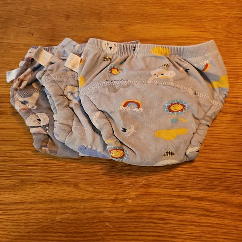 Noe slitasje ved sømmene mellom bena, men ingen hull. Fremstår i god stand.