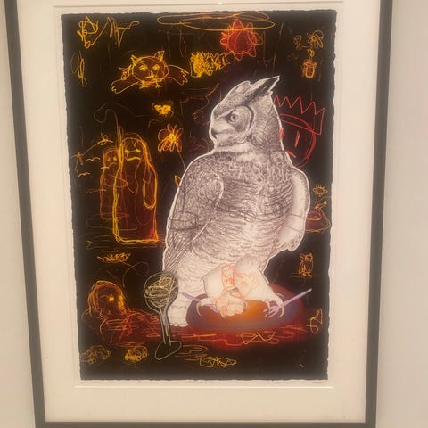 Flytende innrammet med Artglass (UV 70 %) med sort bakgrunn og med ramme av eik.