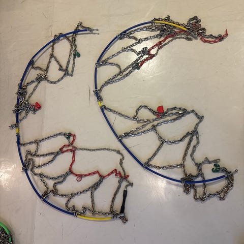 Dette forslår KI at jeg skriver: "Nøsted hurtigkjetting for bruk på dekk. Produktet inkluderer kjede, fjærer og tilbehør for montering. Designet for å gi bedre veigrep under vinterforhold."