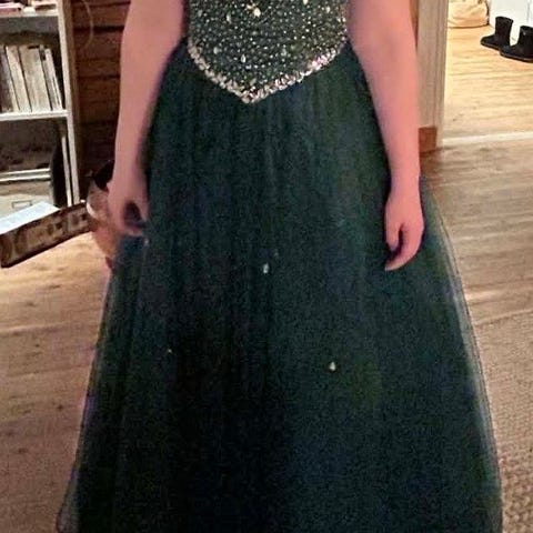 Selger en pent brukt kort ballkjole fra Tina Ritzi i Drammen . Kjolen er i tyll med snøring bak. Kjolen ble brukt på skoleballet i 8.klasse,. Selger også matchende sko i str 37. Kjolen er i str S, og tilpasset ei på 160 cm. Kjolen kan prøves og hentes i Hokksund.