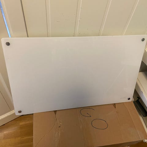 Mill panelovn 1200W med glassfront selges. Følger med veggfeste. Ovnen er 106.5 cm lang og 40 cm høy.