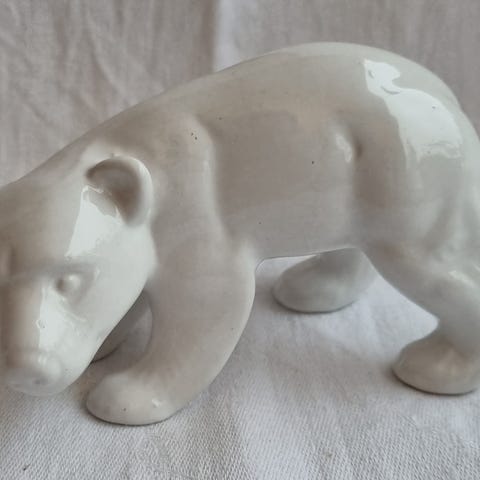 Eldre portugisisk froskefigur i keramikk, solgt på Blaafarveværket