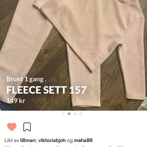 Selger fleecejakke -og bukse setter er fint og helt, men har desverre noen flekker på venstre ben.
