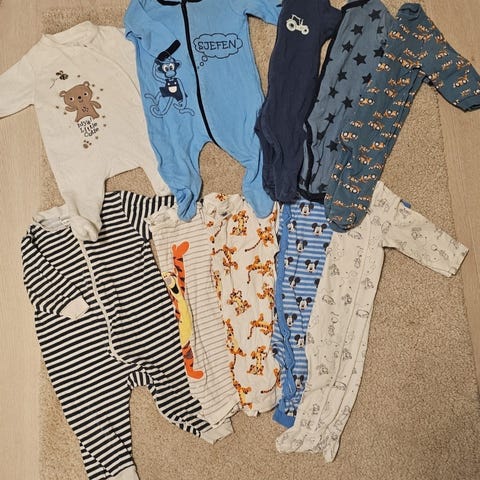 Seks fine og gode pysjer! To av pysjene i romslig strl 62, de andre i 62/68😄