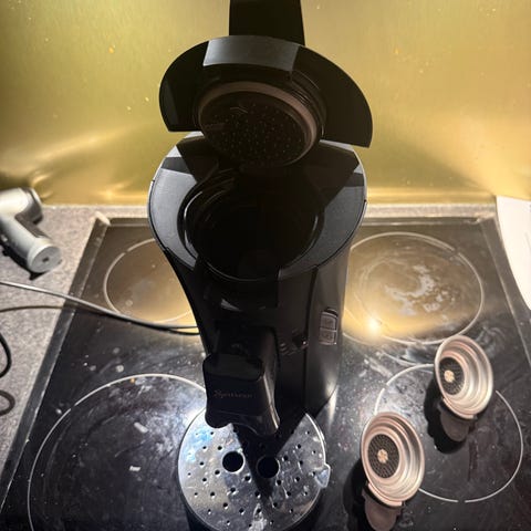 Philips Senseo kaffemaskin i svart farge. Maskinen har en kompakt design og er beregnet for bruk med Senseo kaffepads. Leveres med to ekstra kaffepadholdere.