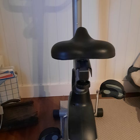 Jula treningssykkel i grå farge. Utstyrt med justerbart sete og digital skjerm som viser tid, distanse, kaloriforbruk og puls. Egnet for innendørs trening. Kjøpt høst 25, knapt brukt. Nypris på tilbud på jula 1499, selges 1000..