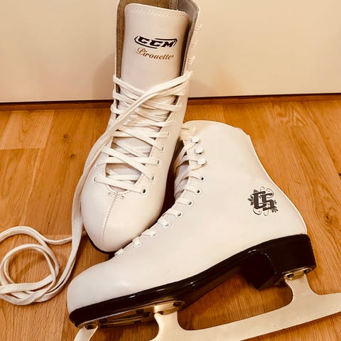 Susanne kunstløp skøyter i størrelse 40 med hvit farge. Skøytene er designet for generell skøytebruk og passer ypperlig på bena,- stabile og gode. Fine førstegangs skøyter og til viderekomne.