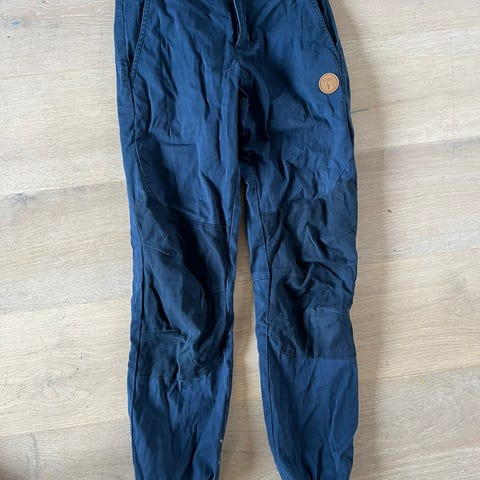 Tufte bukser for dame i størrelse S, laget av organic cotton. Bukser i blå farge med elastisk midje og flere lommer. Egnet for hverdagsbruk og utendørsaktiviteter.