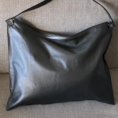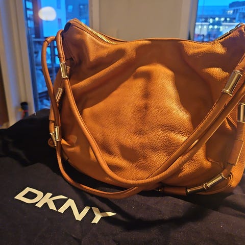 Flere lommer inni, en med glidelås og krok til nøkler osv.