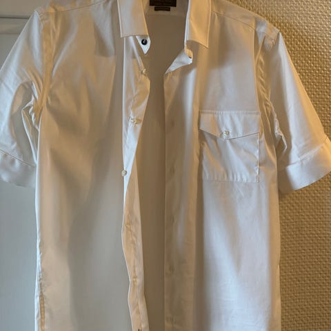 Kortermet skjorte, med to brystlommer. Kan vaskes på 60 grader. 55% bomull og 45% polyester.