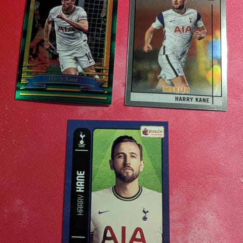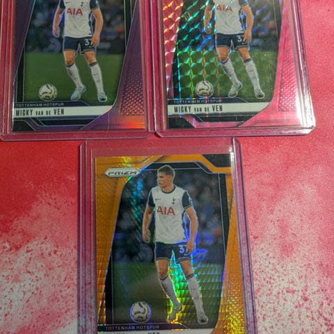 Selger 4 stk. Topps Finest 24/25 av James Maddison for Tottenham Hotspur, fra årgangen de vant Europaligaen. Alle fire kortene for 50 kr.