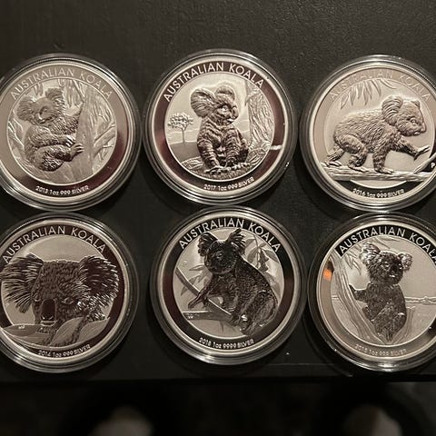 Australian Kookaburra sølvmynter selges for 1100kr pr stk.