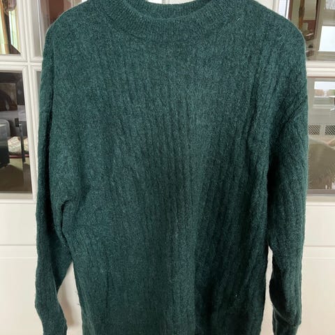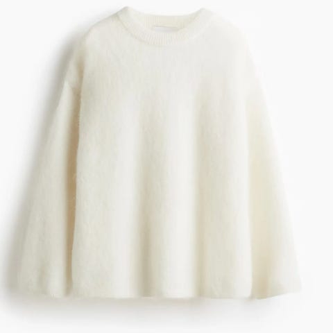 H&M genser i mohairull, hvit farge, størrelse S. Designet for kvinner med v-hals, kort/ crop-modell og langermet.