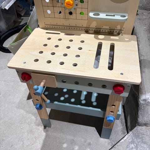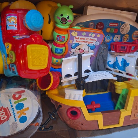 Selger en pakke med leker samlet.