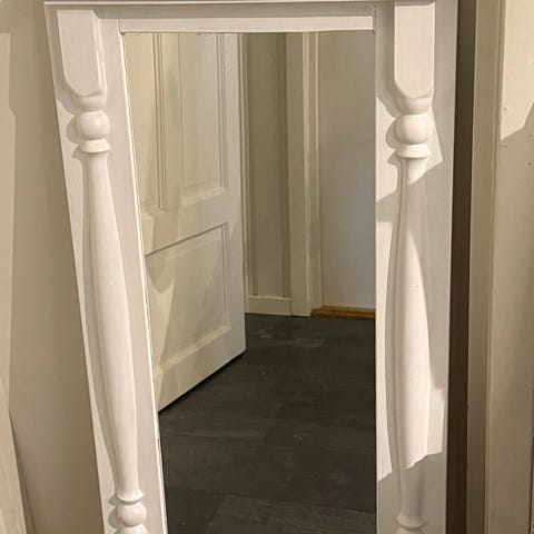 Fint veggspeil, liten sprekk i hjørne (se bilde). 160x45cm. Må hentes.