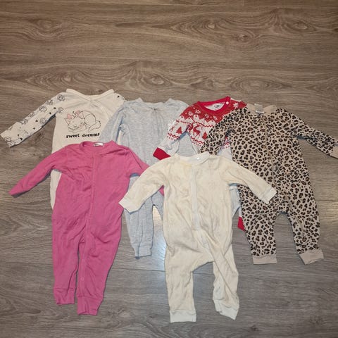 Fem nattdrakter selges samlet. Merkene er Polarn o pyret, Hust & Claire og Cubus.