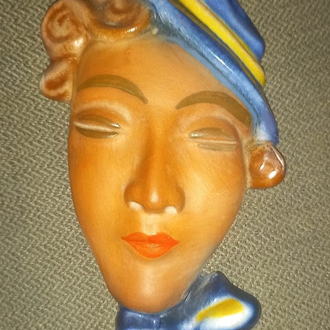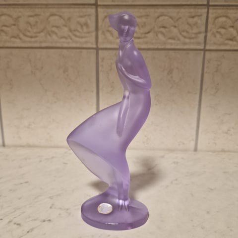 Tahitisk danser 1930 - 1940 av H. Mária Rahmer (1911 - 1998) Ungarsk keramiker fra Budapest som senere flyttet til Canada. I god stand - lite avslag på høyre lilletå - blomster i hår og rundt hender er i god stand mål ca 16 x 9 x 23 cm kr 3500,-