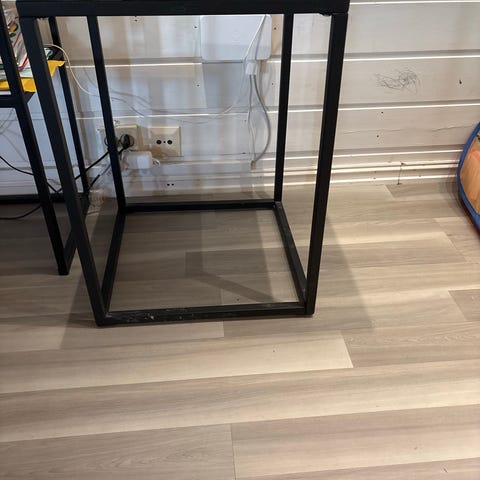 Sortbeiset, lakkert askfinêr bordplate og sort understell.