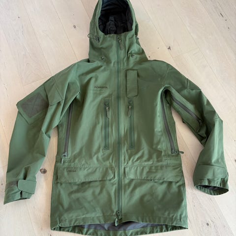 Norrøna Recon jakke i størrelse M til salgs. Jakken er den gamle modellen med Gore Tex. Den brukes dessverre altfor lite, og legges derfor ut for salg. Jakken har flere lommer, og er utstyrt med hette og glidelås.