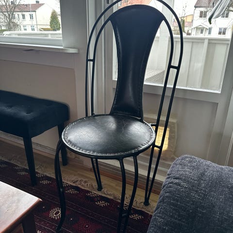 Stol i sort smijern selges. Fin å ha som en ekstra stol i stua eller bare som pynt med noen puter oppi. Passer også fint i en gang eller på et soverom.