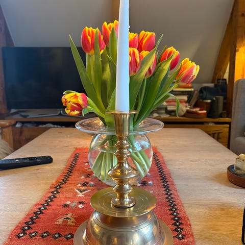 Vintage kåpelysestake i messing med støpt base.