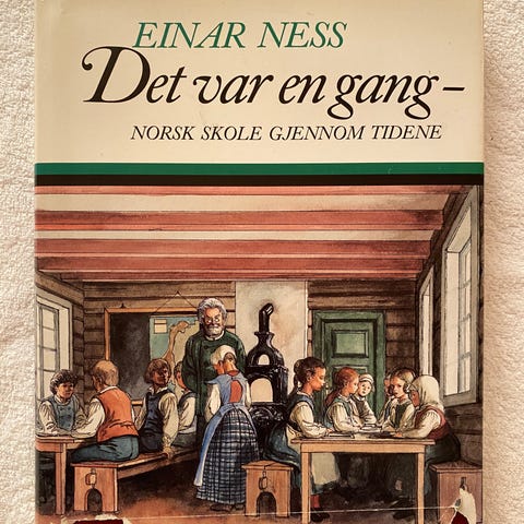 «Det var en gang – Norsk skole gjennom tidene». Av Einar Ness. Utgitt 1989 (236s). Innbundet. I god stand med org. bokomslag. Pris 125 kr.