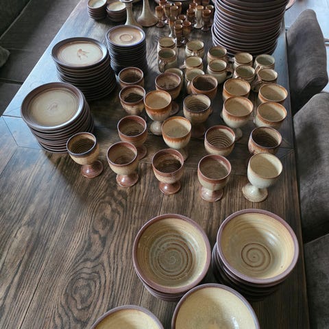 Rörstrand servise deler bestående av tallerkener og skåler i flere farger. Materialet er keramikk. Passer til bruk i kjøkken og til servering.