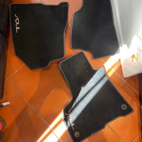 Bmw i3 bilmatte sett, inkludert matter for både foran og bak i bilen. Materialet er slitesterkt og designet for å passe spesifikt til Volkswagen-modeller. Fargen er mørk, og mattene er utformet for å beskytte bilens gulv mot smuss og slitasje.