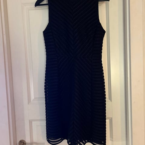 H&M hverdagskjole i størrelse 38 for kvinner. Kjolen er svart og laget av polyester. Den har en enkel design. Sløyfe
