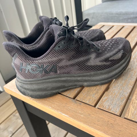 Hoka Clifton 9 i størrelse 43, hvit farge. Skoene er brukt lite i mitt eie og har gått over til nye. Kunne trengt en liten vask for å få de til å se nye ut men ellers er de så vidt slitt.