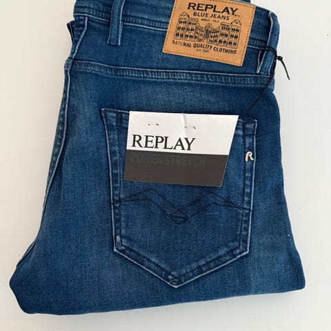 Helt nye Replay bukser med lappen på.