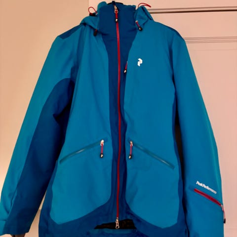 Peak Performance vinterjakke i størrelse L for kvinner. Jakken er rød og laget av polyester. Designet for å gi varme og komfort i kalde værforhold.