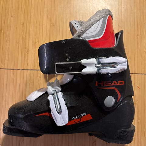 Head Edge J alpinstøvel til barn. Mondopoint 150-165, innersålen måler 16,3 cm, ca. str 26,5. Må hentes på Voksenkollen i Oslo, evt kan de leveres på Tryvann/Skimore etter avtale.