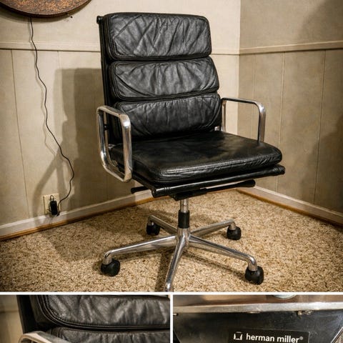 Dette er en Herman Miller-produsert Eames Lobby Chair, primært for det amerikanske markedet. I Europa har Vitra rettighetene til å produsere Eames-møbler, og deres tilsvarende modell er Vitra Eames Lobby Chair ES 104. Designet er identisk, men denne stolen er produsert av Herman Miller.