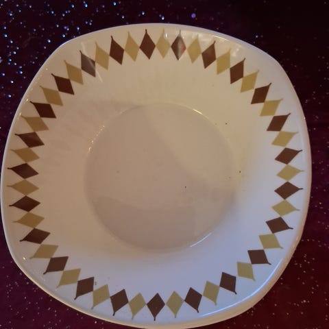 Kremfarget bunn med brun/rustfarget korn- og blomsterdekor