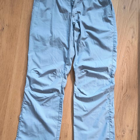 Dette er en godt, men pent brukt turbukse med mye bruk igjen! Det er ingen skader eller hull i plagget, kun noe misfarging av stoffet som følge av friksjon. Buksen fremstår for meg noe smalere i lårene og bredere i midjen.