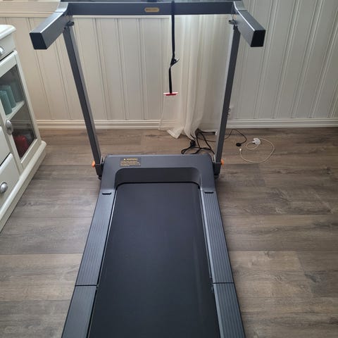 WalkingPad G1. Veldig fin og lett å bruke, lett å sette opp og ta ned. Med hjul. Topphastighet på 12 km/t og veier 38kg