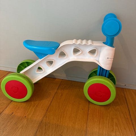 En løpesykkel for de minste som lærer seg å gå og oppover. I god og fungerende stand.